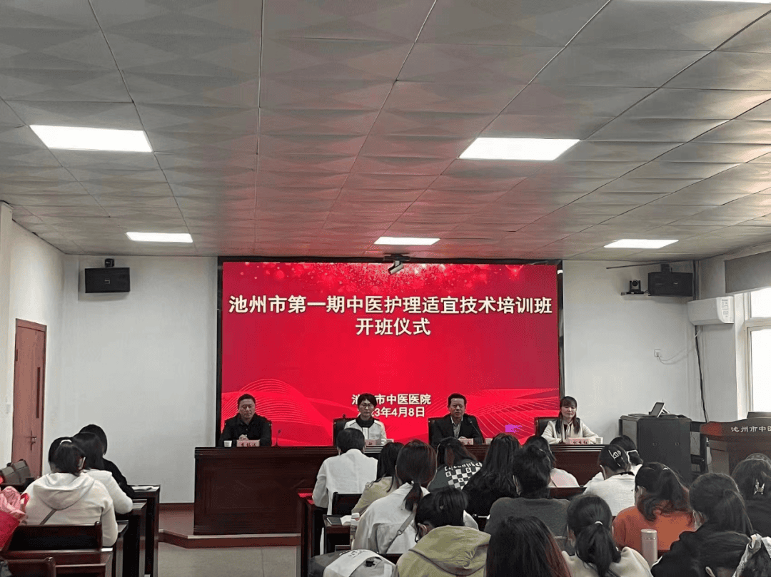 4月8日,池州市第一期中医护理适宜技术培训班开班仪式在池州市中医医院成功举办。此次培训班由池州市卫生健康委主办、池州市中医医院承办,全市各级医疗机构共40余名护理人员参加培训。市卫健委二级调研员路文敏、市卫健委中医科科长李锡汉,池州市中医医院院长徐新兵出席开班仪式并讲话,池州市中医医院工会主席柯秀红主持仪式。