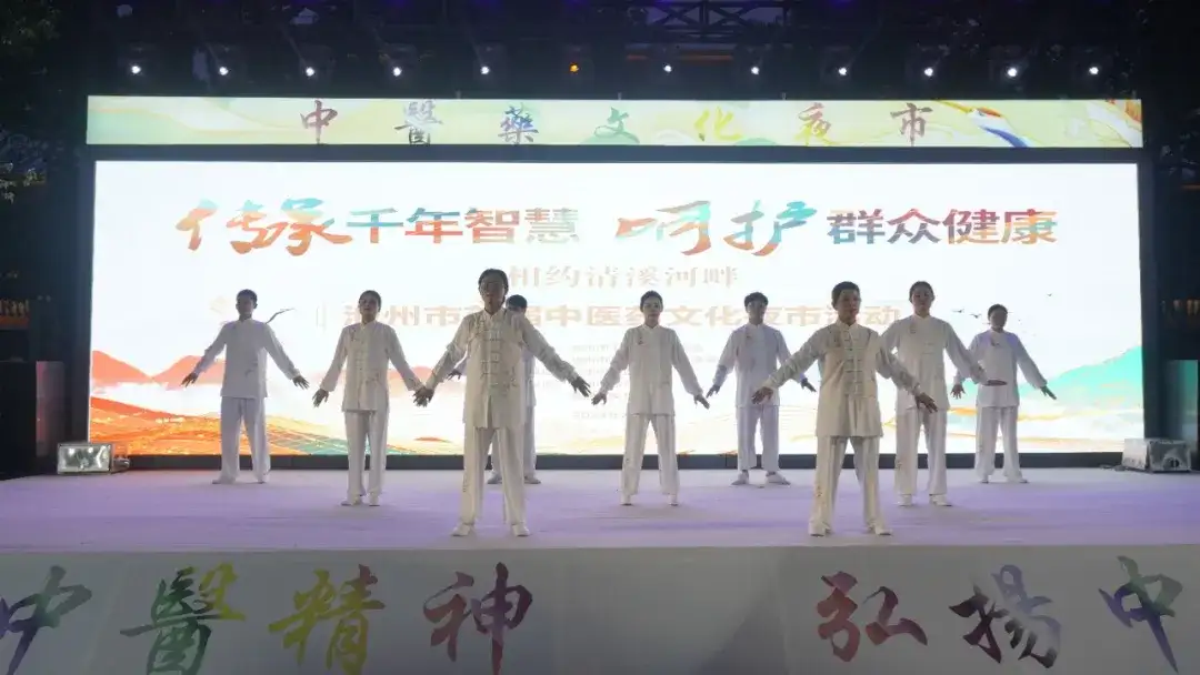 当天晚上,活动现场灯火如昼,人声鼎沸,热闹非凡。一场精彩的八段锦表演拉开了活动序幕。伴随着悠扬舒缓的音乐声,表演人员动作优美流畅,张弛有度,一举一动、一招一式如行云流水般,把八段锦刚柔并济、动静相宜的特点演绎得淋漓尽致。