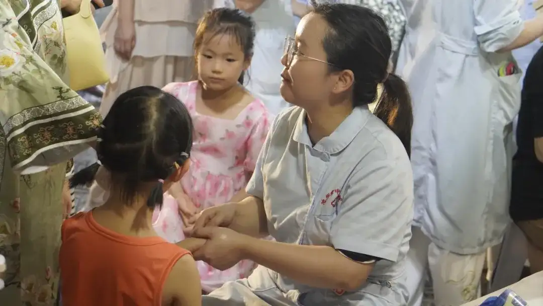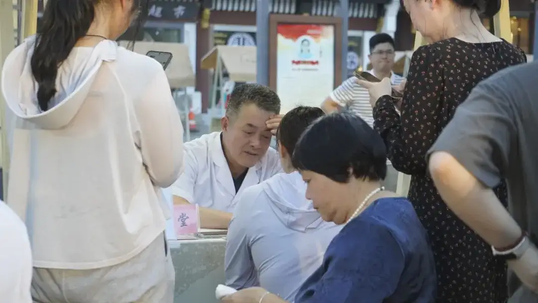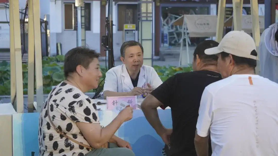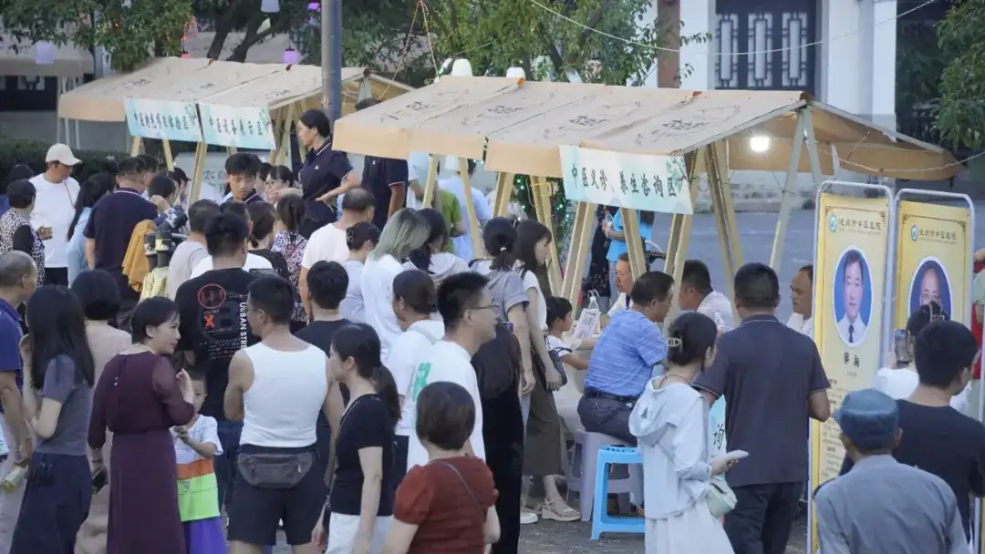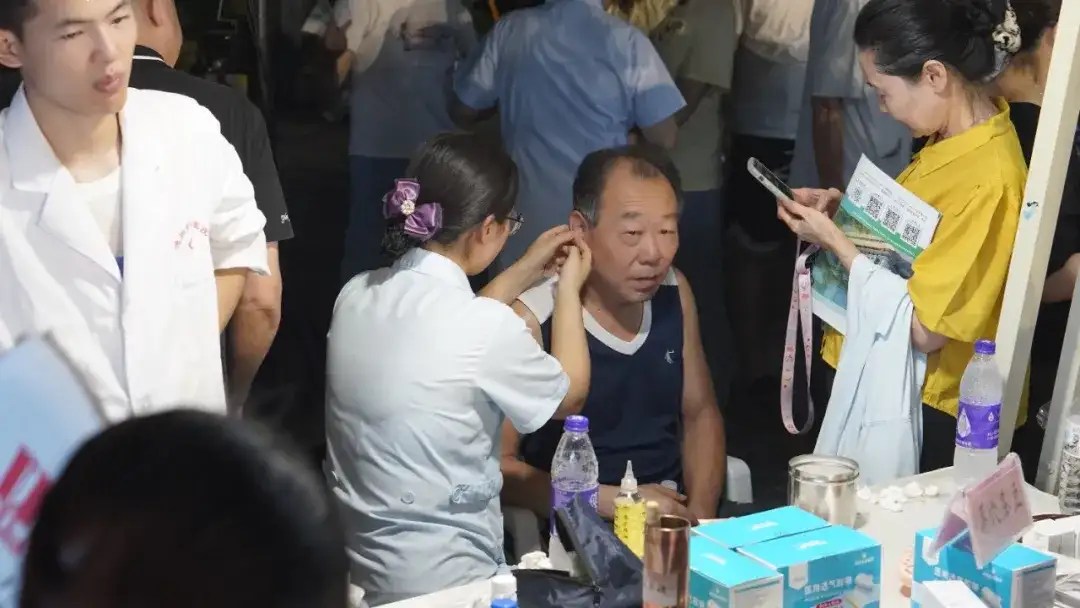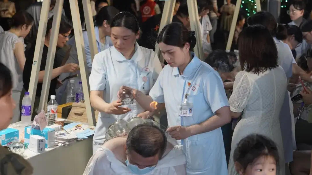 在夜市的另一边,中医特色体验区的展位前也排起了长队。医护人员为有需求的市民群众们免费提供小儿推拿、刮痧、拔罐、艾灸、耳穴压豆等中医适宜技术以及测血压、测血糖等服务,不一会儿便吸引了不少患有颈椎腰腿痛、头痛、失眠等症状的市民朋友们前来体验。