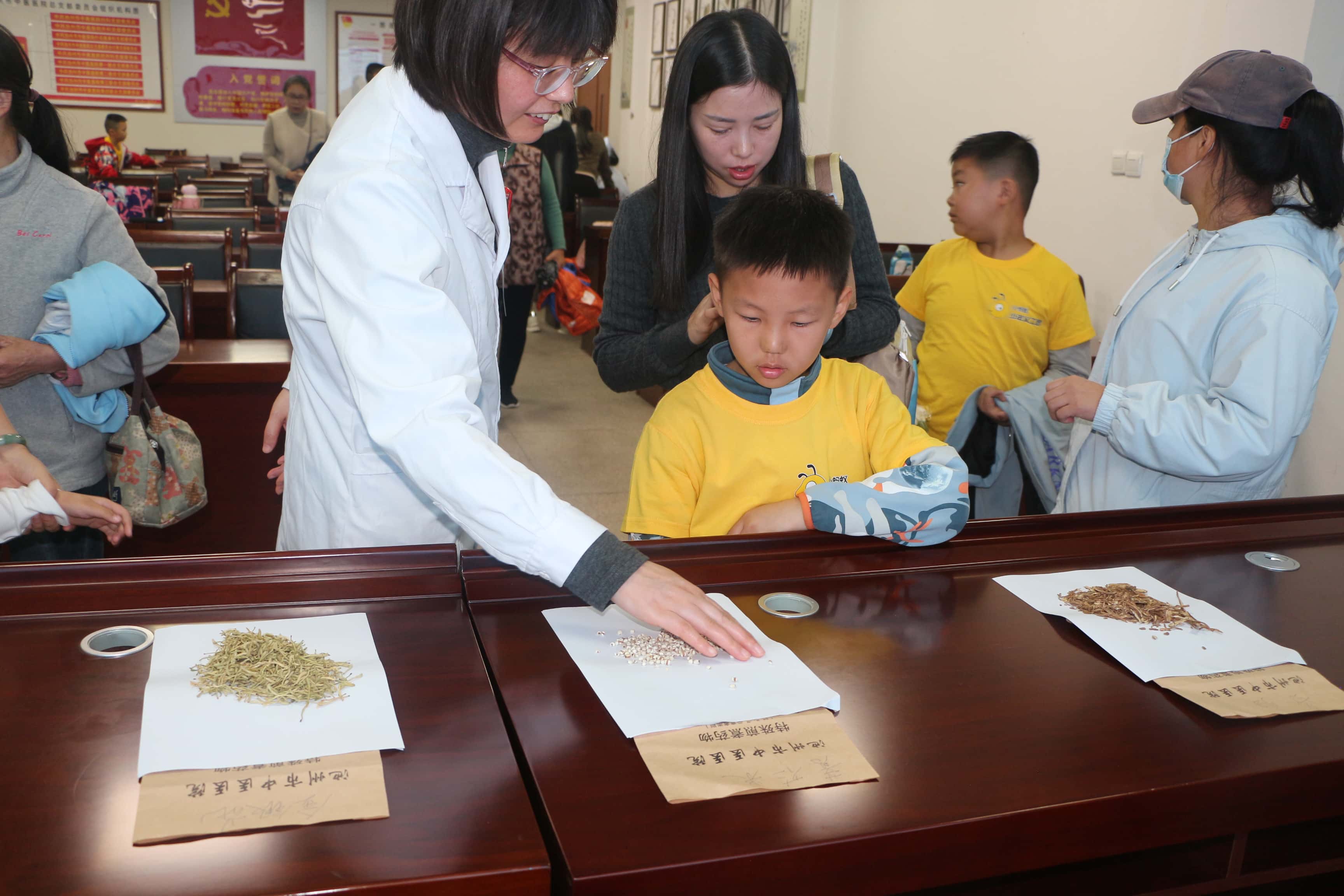 为了让小朋友们更加直观地了解中药材,现场还准备了金银花、当归、黄芪等多种中药材,供大家鉴赏辨识。小朋友们纷纷围上前去,通过“看、闻、摸”等方式近距离体验中药材的形色味,并与医务人员交流分享自己的感受。