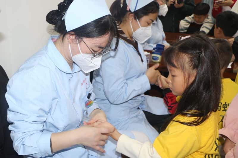 在一旁的小儿推拿区域,医护人员向大家普及了中医小儿推拿的有关知识,逐一讲解推拿过程中相关穴位的特点与作用,并现场演示儿童推拿技术,让大家更好地理解推拿手法的应用技巧。医护人员还针对家长们关心且常见的儿童成长健康问题,结合现阶段的季节气候特点和小朋友们的身体情况,为大家介绍相应的中医预防保健方法。