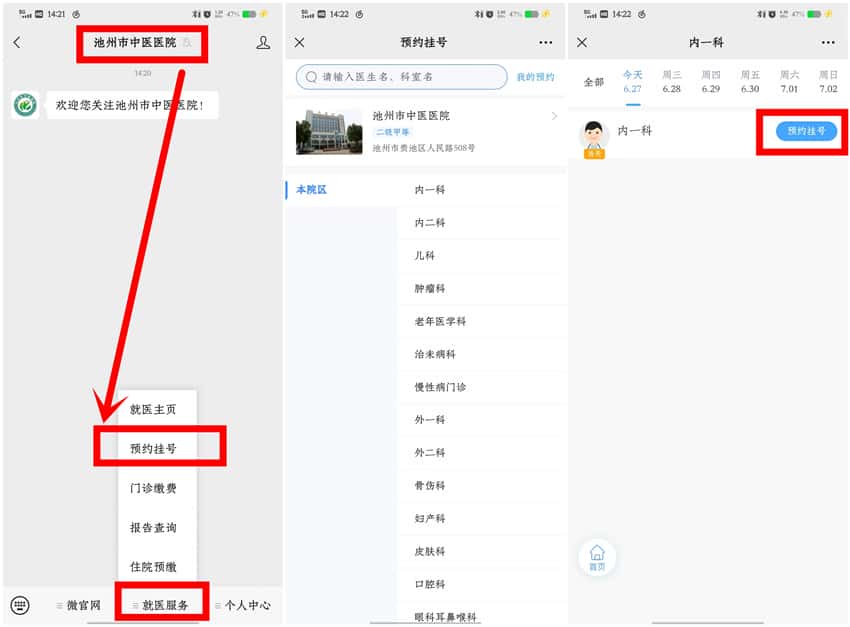 1.推荐微信公众号预约。门诊各楼层大厅均有预约方法宣传,教您使用手机预约,也可咨询各导诊台护士。