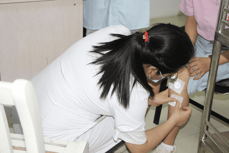 冬病夏治“三伏贴”现场共分为内科、针灸推拿科、儿科三组,分别由经验丰富的医护人员坐诊,患者可根据自身情况选择相应诊室。进入诊室后,医护人员会详细询问患者相关身体情况,针对病灶及疼痛部位选择贴敷穴位。除了三伏贴,医生还会根据体质及病情的不同,选择拔罐、刮痧、督灸、熏蒸等中医特色疗法,为患者制定冬病夏治专属方案。