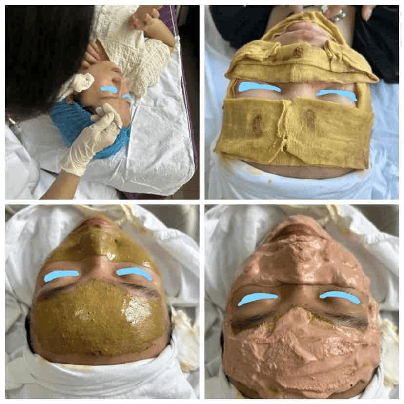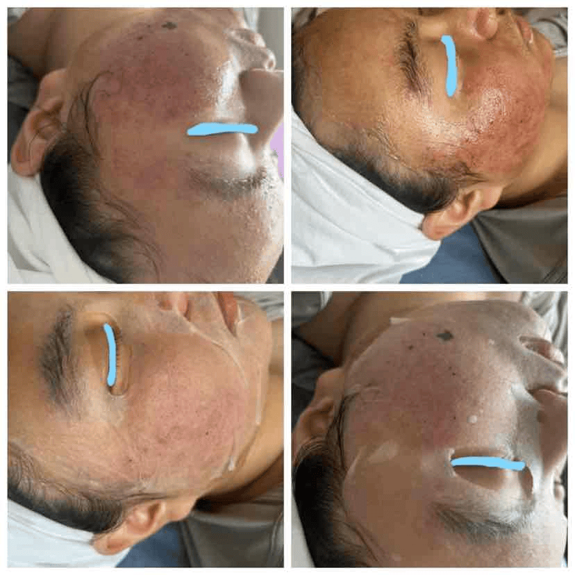 果酸换肤治疗中、果酸换肤后及医用面膜外敷面部示例图: