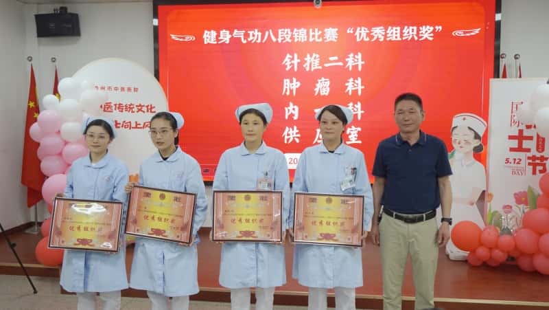 随后,疏喜萍副主席、方明文副书记携医院领导班子成员分别为健身气功“八段锦”团体竞赛获奖者、中医理论知识竞赛获奖者、池州市中医医院2023年度“优秀护士”、“优秀护理单元”以及第二医共体优秀护士颁奖并合影留念。