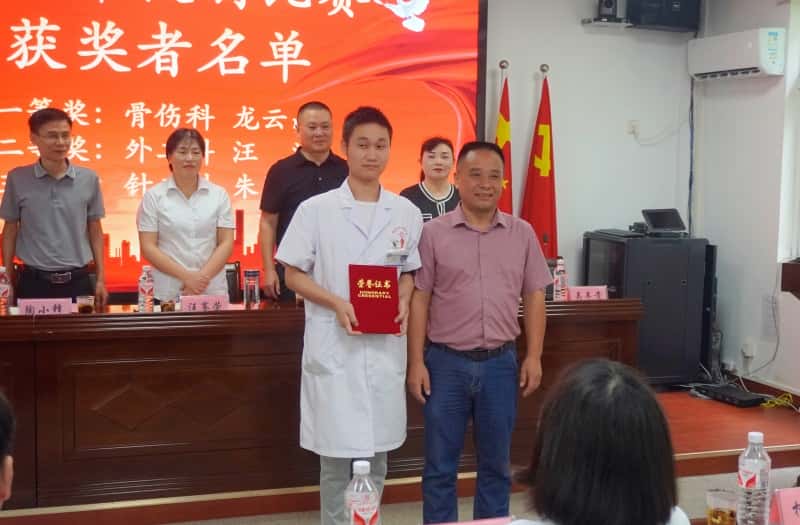 为表彰先进,树立典型,鼓舞斗志,医院党总支副书记余峰在会上宣读了贵池区第二医共体“最美村医”、贵池区第二医共体“最美乡镇(社区)医生”及池州市中医医院“自行车慢骑比赛”获奖者、“医疗安全征文比赛”获奖者、“急诊急救技能竞赛”获奖者、“优秀病历”获得者、“年度先进科室”、“最美医师”获得者名单。在热烈的掌声中,受表彰的医师或科室代表依次走上领奖台,参会领导分别为其颁奖,并与他们合影留念。