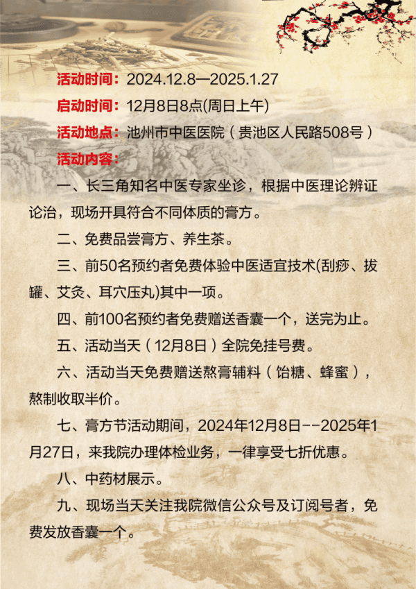 > 12月8日(本周日),池州市中医医院第五届膏方节暨长三角名中医义诊活动火热开启!