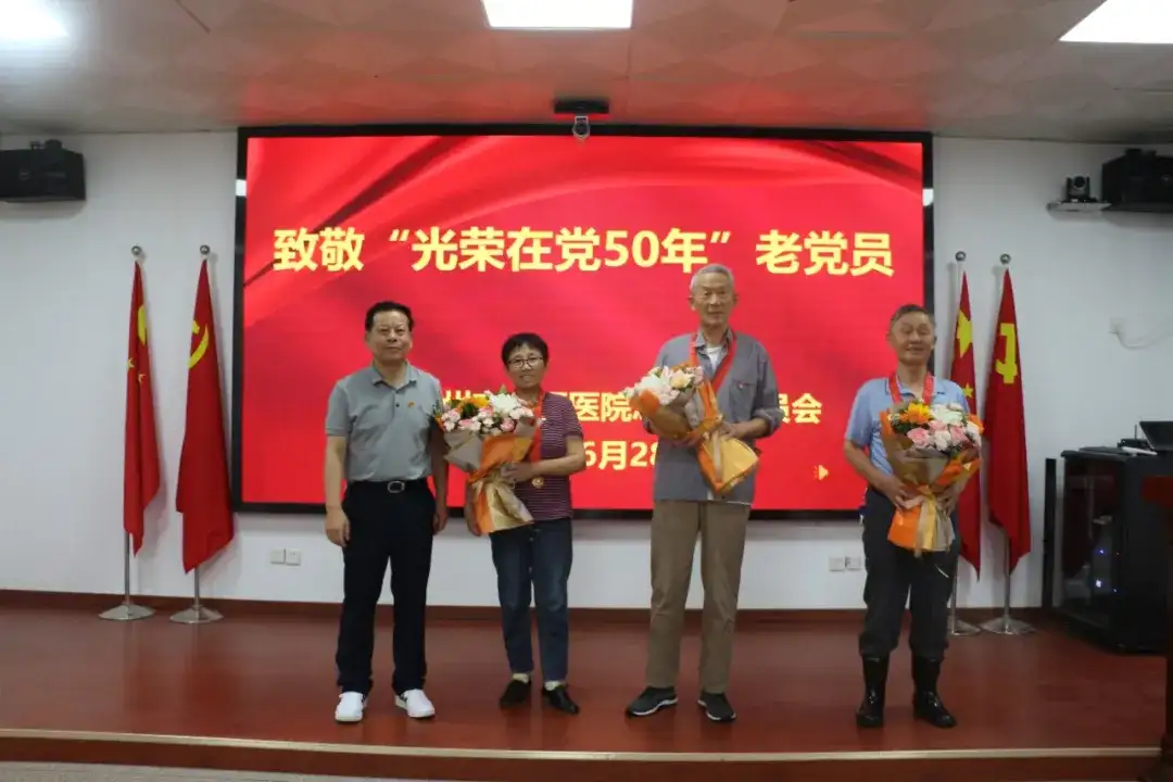 伟大的时代呼唤伟大的精神,崇高的事业需要榜样的引领。在座谈会活动当中,举行了“光荣在党50年”纪念章颁发仪式,院党总支书记徐新兵为“光荣在党50年的老党员们颁发纪念章并献上鲜花。荣获纪念章的老党员们激动地表达了对新时代、对党和国家的赞美祝福以及内心的自豪感和幸福感。