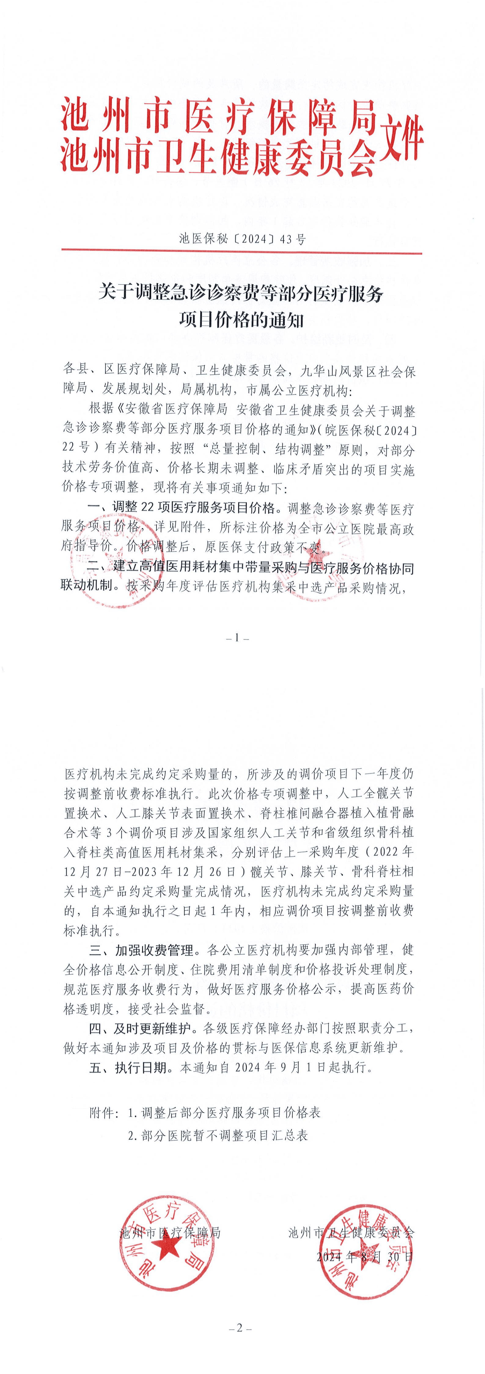 关于池州市中医医院市场调节价项目试行价格备案的通知