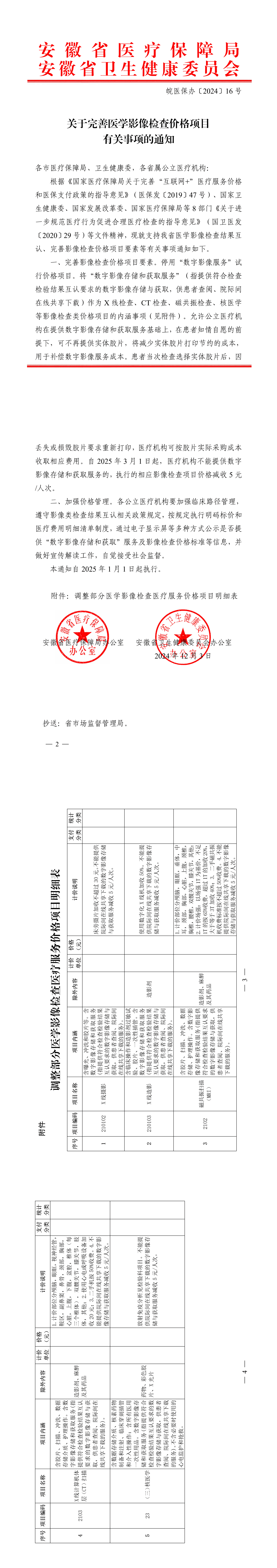 关于完善医学影像检查价格项目有关事项的通知