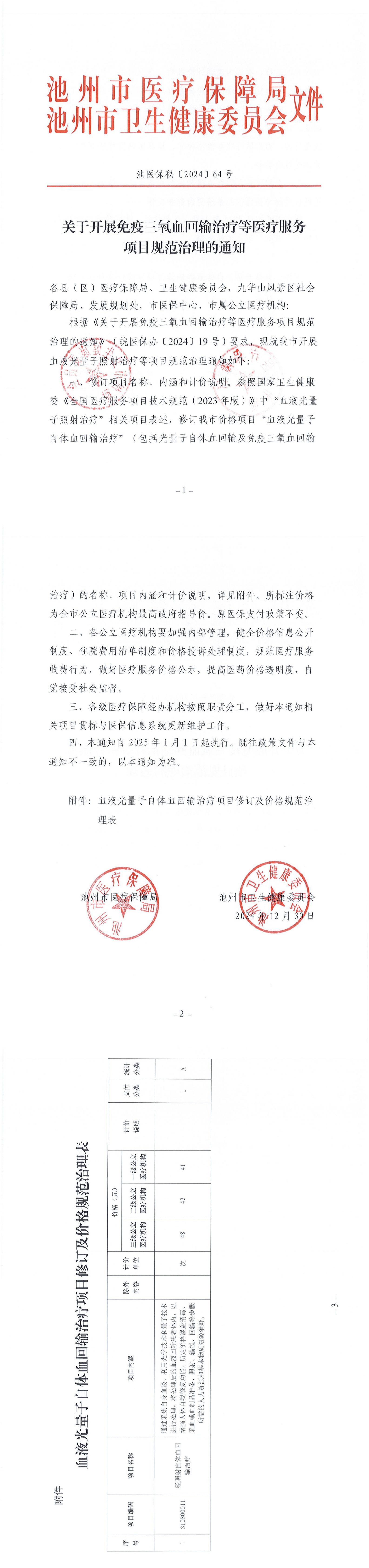 关于开展免疫三氧血回输治疗等医疗服务项目规范治理的通知