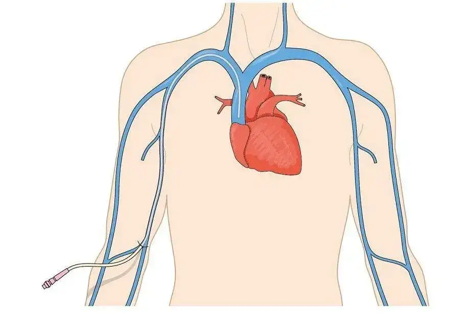 PICC是经外周静脉置入中心静脉的导管。PICC经外周静脉置入,导管头端位于上腔静脉中下1/3与右心房交接处或位于下腔静脉横膈膜水平。